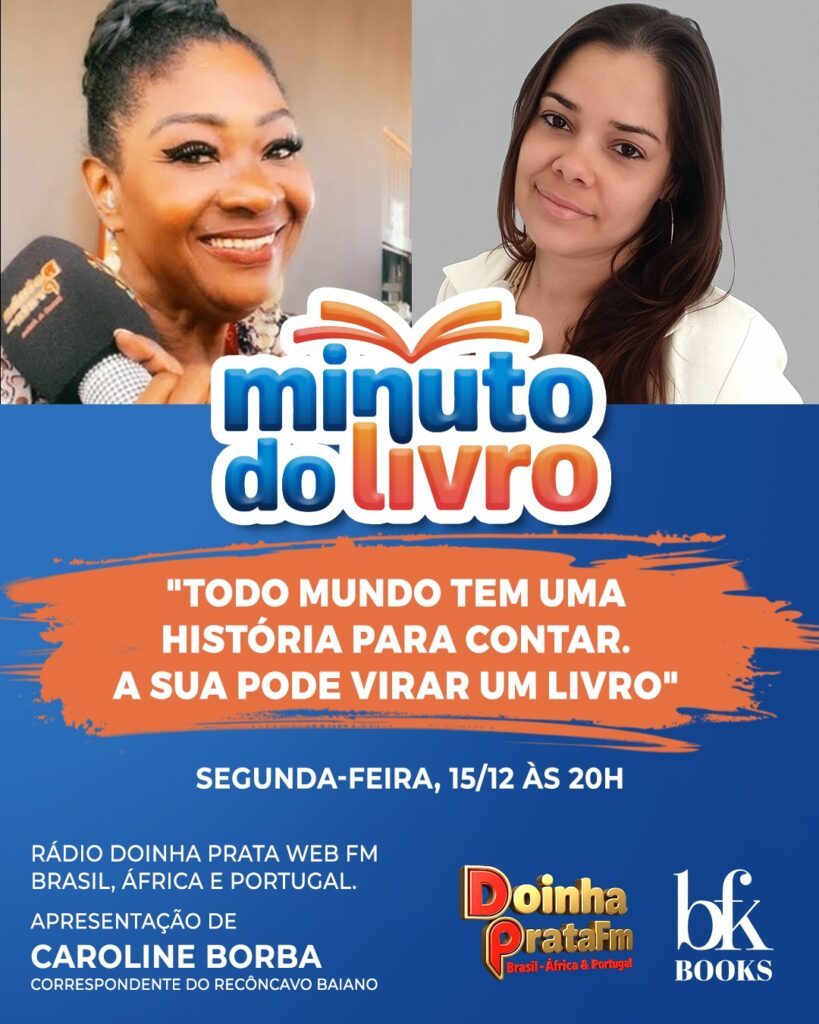 Nesta segunda-feira, às 20h, o programa Ei, vc tá aí, normalmente apresentado por @doinhaprata e transmitido pela Rádio Doinha Prata Web FM para o Brasil, África e Portugal, terá uma edição especial sob o comando de Caroline Borba, editora-chefe da BFK Books e correspondente do programa no Recôncavo Baiano.