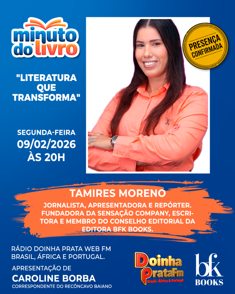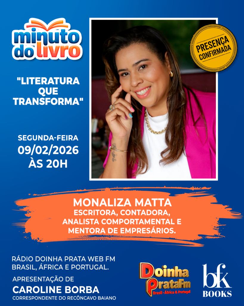 Programa Minuto do Livro desta segunda-feira, 09 de fevereiro, às 21h, será dedicado a uma reflexão profunda sobre o impacto da literatura na sociedade. A edição especial será transmitida pela Rádio Doinha Prata Web FM, com alcance no Brasil, África e Portugal.